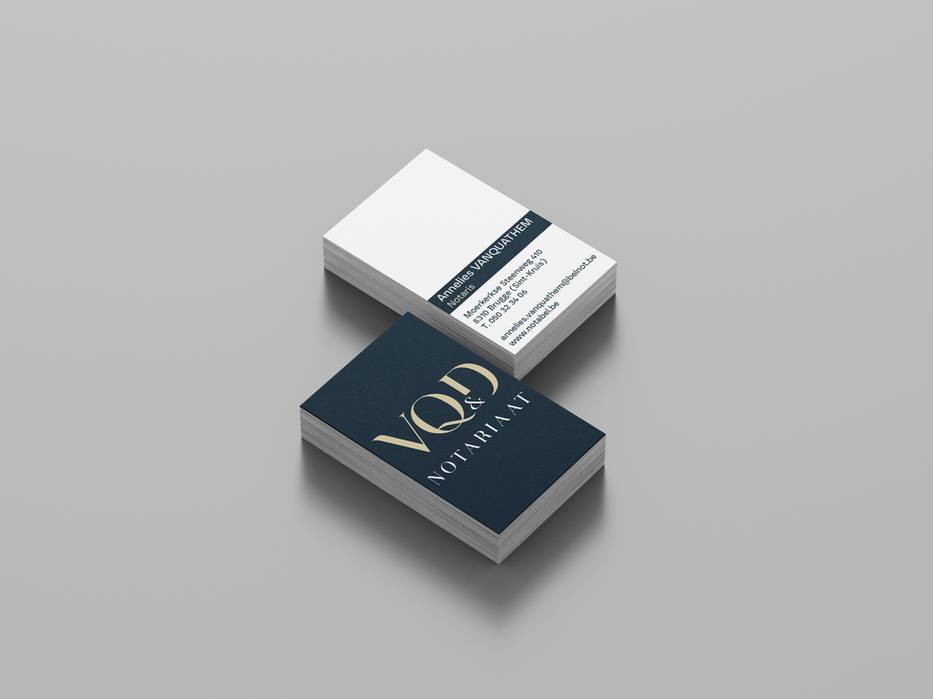 Voor Notariaat VQ&D bestond de opdracht er uit om de huisstijl te vernieuwen. Door de komst van een nieuwe notaris, werd de naam veranderd en moest het logo hier bij aansluiten.