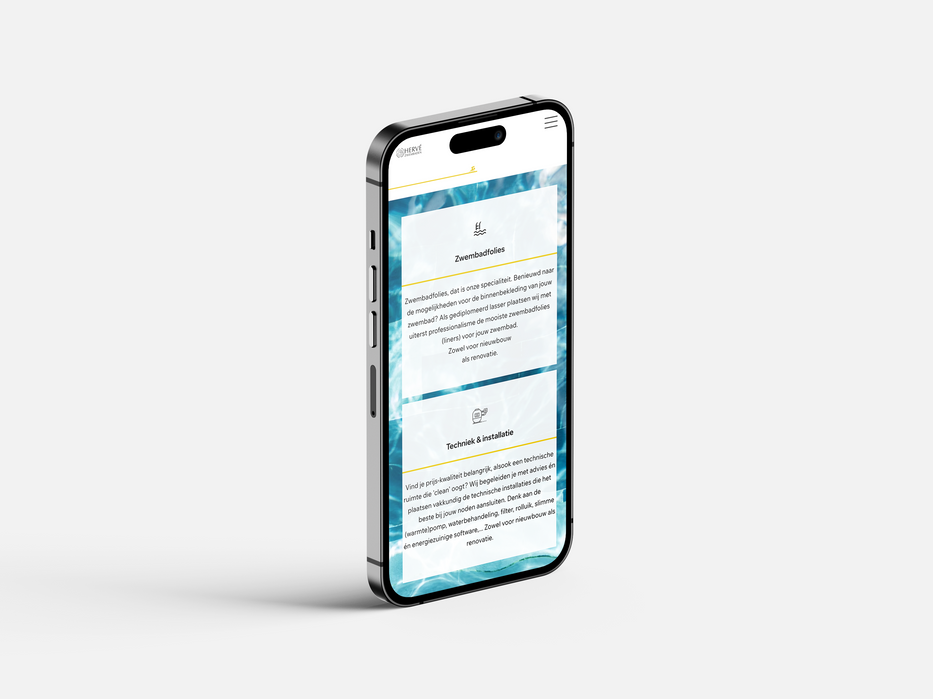 Zwembaden Hervé koos voor one-page magic op de nieuwe website.